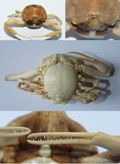 Caratteri distintivi: lunghezza-larghezza del carapace 28x27 mm. Corpo globoso e liscio. Chelipedi molto lunghi, con dattilo e dito fisso lunghi e stretti. Colore giallastro chiaro.