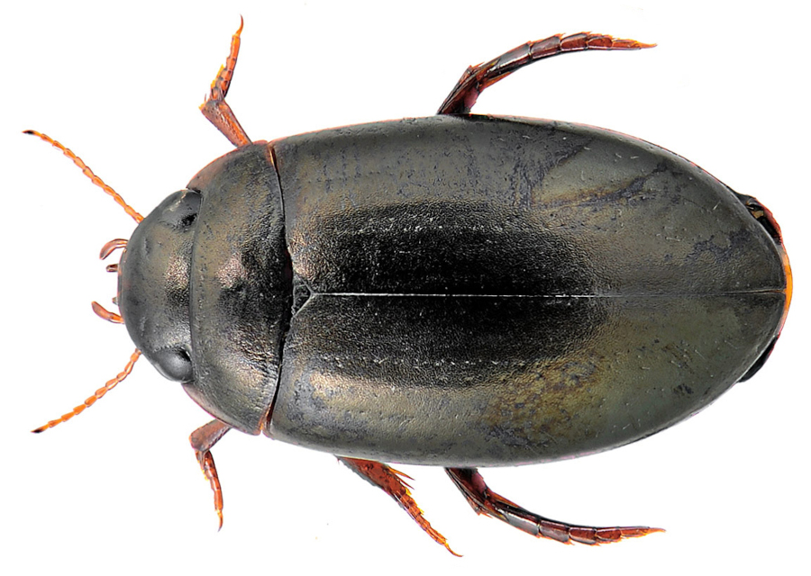 Morfologia: lunghezza 7-8,5 mm. Corpo lungamente ellittico, con la massima larghezza dietro la metà, convesso sopra e sotto; microscultura a maglie rotondeggianti evidente su tutta la parte superiore. Colorazione generale: nerastra con debole riflesso bronzeo; capo nerastro con clipeo e labbro superiore rossastri; antenne e palpi rossicci; pronoto nerastro con margini laterali rossicci; zampe bruno-nerastre con tarsi più chiari. Capo: largo e appiattito; occhi grandi e appena sporgenti dal profilo del capo; antenne lunghe e sottili con 11 articoli più lunghi che larghi. Pronoto: molto largo; margine anteriore debolmente arcuato verso il capo, punteggiato per tutta la lunghezza, alle due estremità laterali fortemente sporgente in avanti; margini laterali con bordo largo; margine posteriore arrotondato e sporgente verso le elitre e, ai lati, punteggiato. Zampe: snelle; tibie mediane con 2 speroni, tibie posteriori con 1, tutti lunghi almeno quanto il primo tarsomero; tarsi di 5 articoli. Elitre: ognuna con 4 strie di punti diventanti più evidenti verso l’apice; prive di macchie; maglie della microscultura verso l’apice reticolate all’interno. Dimorfismo sessuale: nel maschio tarsi anteriori coi primi 3 articoli dilatati.