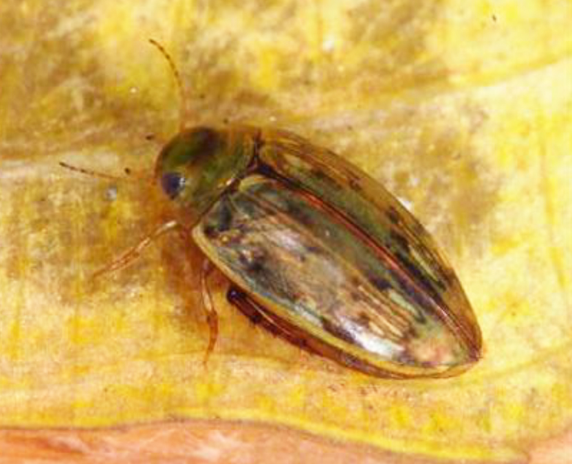 Morfologia: lunghezza 4,2-4,8 mm. Corpo piccolissimo, allungato, coi lati regolarmente arrotondati, ugualmente convesso sopra e sotto; massima larghezza circa alla metà; parte superiore lucida, con microscultura evidente, ma superficiale; punteggiatura quasi inesistente. Colorazione generale: verde-giallastra più o meno uniforme. Capo: molto largo, convesso e assai regolarmente arrotondato, con microscultura molto debole; occhi perfettamente inseriti nel profilo del capo; antenne molto allungate e gracili con articoli molto più lunghi che larghi. Pronoto: molto largo, convesso, con microscultura evidente; margine anteriore un po’ convesso e, ai lati, fortemente sporgente verso gli occhi; margini laterali arrotondati e privi di bordo; margine posteriore ai lati debolmente sinuoso e inclinato indietro verso la sutura elitrale. Zampe: le anteriori e medie snelle, le posteriori tozze, estremamente adattate al nuoto, con femori, tibie e tarsi molto appiattiti; tarsi di 5 articoli; gli anteriori nei maschi coi primi 3 articoli un po’ dilatati; tarsi posteriori con articoli provvisti all’angolo posteriore esterno di un lungo lobo. Elitre: poco allungate, regolarmente convesse, con massima larghezza davanti alla metà e poco ristrette all’apice che è ottuso; lati arrotondati; punteggiatura scarsa e rappresentata da 3 serie longitudinali poco distinte di punti radi e superficiali che nella parte posteriore sono distribuiti in modo confuso; ali visibili per trasparenza. Dimorfismo sessuale: primi 3 articoli dei tarsi anteriori debolmente dilatati nel maschio.
