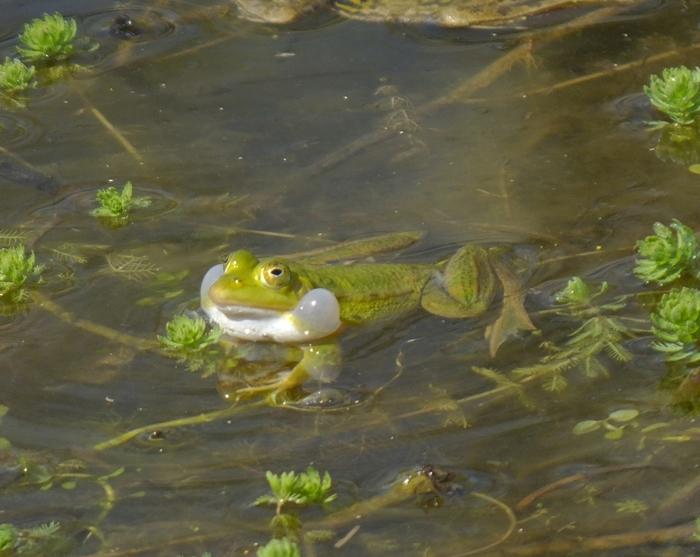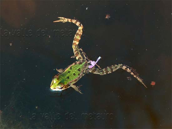 Biologia: la nostra Rana verde è un’abile nuotatrice e sul terreno si muove a balzi. E’ attiva sia di giorno che di notte. Sverna nel terreno, più di rado nel sedimento sott’acqua. Gli adulti si nutrono soprattutto di insetti, catturati fuori dell’acqua; i girini sono onnivori ma soprattutto vegetariani. Durante il periodo riproduttivo, da marzo a giugno, si riunisce in gran numero e i maschi emettono forti gracidii grazie alle sacche vocali che fungono da cassa armonica. La femmina depone le uova raccolte in masserelle gelatinose di forma globosa. I girini nascono dopo 2-4 settimane e restano in acqua per circa 2-3 mesi prima della metamorfosi.