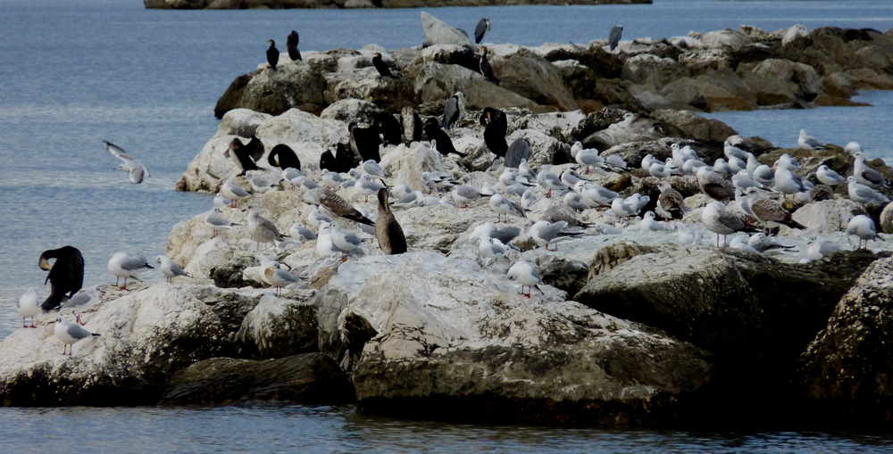 Quando l'inverno è alle porte, arrivano i primi uccelli acquatici che vivono nelle acque antistanti la costa, come i sempre più comuni Cormorani (spesso posati sulle scogliere per asciugare le ali), lo Svasso maggiore, lo Svasso piccolo e il Tuffetto (tutti ottimi nuotatori e cacciatori di pesce) ma anche un mangiatore di mitili come il raro Edredone, l'altrettanto raro Quattrocchi o lo sgargiante Smergo minore.