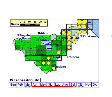Osservazioni al di fuori della zona di studio: costa alta del San Bartolo a NO di Pesaro, diversi individui catturati tutti gli anni dal 1994 al 2004 durante la migrazione primaverile nel Centro di inanellamento di Monte Brisighella gestito dalla Provincia di Pesaro e Urbino (GIACCHINI et al., inedito).