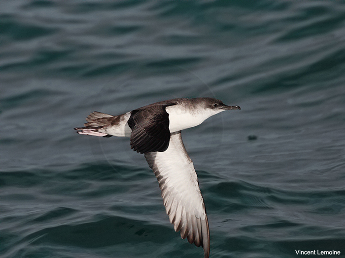 Dati accertati nella zona di studio (bacino del Metauro e Adriatico antistante Fano): Osservazioni: solitamente la specie è presente oltre le 10 miglia, ma è stata osservata anche a poche miglia dalla costa. Un esemplare alla foce del Metauro l'8 dicembre 2018 a circa 150 metri dalla riva, proveniente da nord e infastidito da un gabbiano comune che lo costringeva a salire di quota rispetto al livello del mare (volava piuttosto basso sull'acqua), per poi riprendere verso sud (PANTALONE, com. pers.).