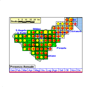 Dati accertati nella zona di studio (bacino del Metauro e litorale di Fano): stato fenologico: specie nidificante e svernante, con popolazioni parzialmente sedentarie e altre migratrici (B, M, W). Nidificazioni probabili e una certa (pulcini nel nido su un albero). Frequenza di osservazione: frequente. Osservazioni: dal 1979 al 2025, per tutto l’arco dell’anno. Vive in campagne alberate, incolti erbosi, boschi ripariali, giardini e parchi urbani, margini di boschi in tutta la zona di studio, dal piano alla montagna sino a circa 1500 m di quota.