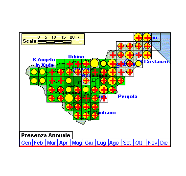 Dati accertati nella zona di studio (bacino del Metauro e litorale di Fano): stato fenologico: specie nidificante sedentaria, migratrice e svernante (SB, M, W). Nidificazioni certe (genitori in cova e pulcini, nidi entro buchi di alberi e muri e dentro nidi artificiali). Frequenza di osservazione: frequente. Osservazioni: dal 1981 al 2024, per l’intero arco dell’anno. In tutta la zona di studio è nidificante e frequenta boschi, campagne con siepi ed alberi, boschi ripariali, parchi e giardini in città, dal piano alla montagna.