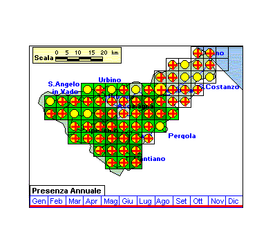 Dati accertati nella zona di studio (bacino del Metauro e litorale di Fano): stato fenologico: specie nidificante e svernante, con popolazioni parzialmente sedentarie e altre migratrici (B, M, W). Nidificazioni certe (genitori che imbeccano i pulcini nel nido e i giovani non volanti). Frequenza di osservazione: comune. Osservazioni: 1979 al 2024, per l’intero arco dell’anno. In tutta la zona di studio frequenta boschi, campagne alberate e parchi urbani, dal piano alla montagna sino a circa 1400-1500 m di quota. Medio bacino e zona appenninica interna: Riserva del Furlo: risulta una delle specie a più ampia distribuzione, rilevata in periodo riproduttivo dagli ambienti della gola al limite altitudinale del bosco (GIACCHINI e FANESI, 2019). Dintorni di Cantiano in loc. Cospio, genitori che imbeccano i pulcini nel nido, nel maggio 1980 (PANICO, com. pers.).