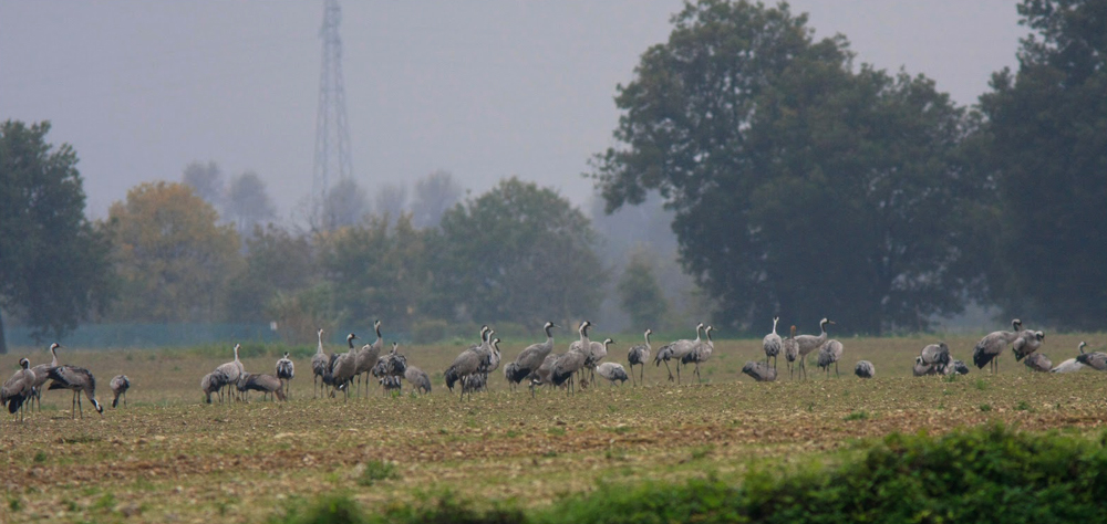 Dati accertati nella zona di studio (bacino del Metauro e litorale di Fano): stato fenologico: specie migratrice e irregolare d’inverno (M, W irr). Frequenza di osservazione: scarsa. Osservazioni: basso bacino: Metauro in Comune di Fano dal 1981 al 2021, non tutti gli anni. Stagno S. Rita a 3 km dalla foce, da uno a 20 individui nell’aprile del 2002, 2009, 2014, 2015 e 2018 (POIANI, com. pers.). Zona erbosa del Campo d’Aviazione di Fano: 2 individui nell’aprile 2002 (CAVALIERI, com. pers.); 2 posati per più giorni nel febbraio 2016 e uno nel maggio 2019 (DIONISI; BAI, com. pers.); 4 posati per più giorni nell’aprile 2020 e uno nel novembre 2021 (DIONISI). Osservazioni invernali lungo il Metauro a 4,5 km dalla foce: 48-50 individui hanno sorvolato la zona il 13-12-2002 e successivamente si sono diretti verso l’entroterra emettendo il loro tipico verso, altri 38 individui l’8-1-2003 in volo con formazione a V (CAVALIERI, com. pers.). Medio bacino: piana di Maiano poco ad est di Cagli, un individuo svernante nell’inverno 1978-1979 è stato ucciso e poi imbalsamato (LELI, com. pers.). Presso Acqualagna, 30 individui in volo il 15-11-2003 (SAVELLI, com. pers.). Zona appenninica interna: M. Nerone, 8 individui il 27-10-2015, in transito verso ovest provenienti dalla costa (FANESI, com. pers.). San Crescentino in Comune di Cantiano, un individuo nell’aprile 2004 (LELI, com. pers.).