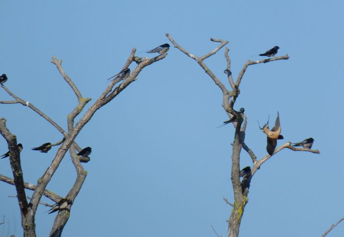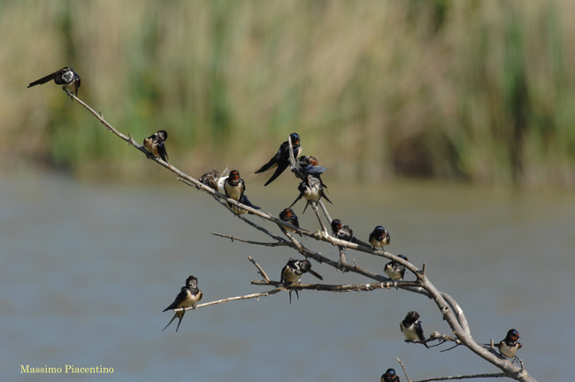 Dati accertati nella zona di studio (bacino del Metauro e litorale di Fano): stato fenologico: specie migratrice e nidificante (M, B). Nidificazioni certe (genitori in cova e pulcini, nido a coppa di fango aperta verso l’alto dentro stalle, capanne e abitazioni di campagna). Frequenza di osservazione: frequente. Osservazioni: dal 1979 al 2025, da metà marzo ad ottobre. Presente in tutta la zona di studio, frequentando i campi coltivati ed i prati posti in vicinanza del nido, dal piano a 800 m circa di quota. Durante la migrazione si incontra in particolare lungo la costa, in volo sulle acque dolci e anche sul mare. Basso bacino: negli ultimi decenni è stata vista nidificare pure sotto ponti e viadotti. Dal 1995 al 2006 ogni anno anche diverse centinaia di individui hanno usato il fragmiteto dello Stagno Urbani come dormitorio.