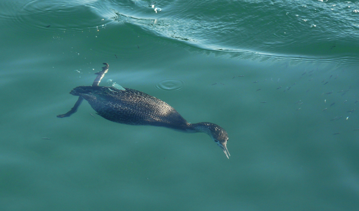 Dati accertati nella zona di studio (bacino del Metauro e litorale di Fano): stato fenologico: specie irregolare come migratrice e d'inverno (M irr, W irr). Frequenza di osservazione: rara. Osservazioni: basso bacino: spiaggia di Fano, un individuo trovato morente il 15-12-1990 in concomitanza di condizioni meteorologiche avverse (DIONISI e POGGIANI, 1991). Foce del Metauro: un individuo il 28-12-2016 (FANESI, com. pers.) e un altro il 5-1-2019 (FANESI e PANTALONE, com. pers.). Litorale di Torrette di Fano, 3 individui il 31-12-2018 (FANESI, com. pers.). Porto di Fano, un individuo il 21-12-2024 (FANESI, com. pers.).