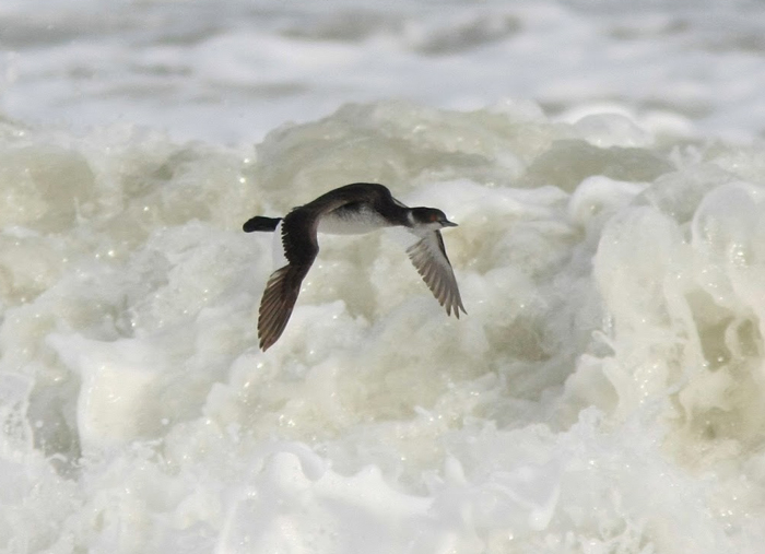 Dati accertati nella zona di studio (bacino del Metauro e litorale di Fano): stato fenologico: specie migratrice e svernante (M, W). Frequenza di osservazione: scarsa. Osservazioni: gli individui che compaiono nella zona di studio sono in livrea invernale, ma da marzo si possono osservare anche in muta e ad aprile alcuni hanno già assunto la livrea estiva. Basso bacino: frequenta i laghetti di escavazione dell'ultimo tratto del Metauro, il porto di Fano e le acque marine costiere, da fine agosto ad aprile, con rilevazioni quasi tutti gli anni dal 1980 al 2023, sia con individui isolati che in gruppo. Una coppia in livrea estiva è stata osservata il 23-3-1985 un miglio al largo della foce del Metauro (PANDOLFI e SANTOLINI, 1985). La sua presenza in mare è divenuta regolare in inverno anche a seguito della sistemazione di nuove scogliere foranee (ad esempio nel tratto di Sassonia a Fano) che hanno creato condizioni favorevoli nelle giornate di mare agitato. Zona appenninica interna: laghetto in loc. Cospio nei dintorni di Cantiano, 8 individui l’8-4-1984 (LELI, com. pers.).