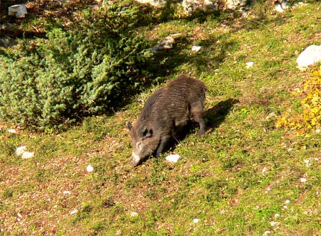 Caratteri distintivi: lunghezza testa-corpo 60-100 cm. La maggior parte della popolazione italiana è il risultato di ripopolamenti a scopo venatorio a partire dagli anni ’60 del secolo scorso e che continuano tuttora, utilizzando individui di provenienza extra-italiana anche oggetto di incrocio con il maiale, cancellando di fatto il patrimonio genetico dei cinghiali italiani.