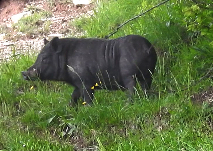 Aspetto inconfondibile: assomiglia ad un maiale ricoperto da un fitto mantello scuro.