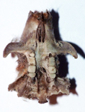Caratteri distintivi: aspetto inconfondibile per il mantello di colore arancione sul dorso e bianco sul ventre. Coda coperta di peli dello stesso colore del dorso. Molari superiori con corona (1) dotata di creste trasversali.