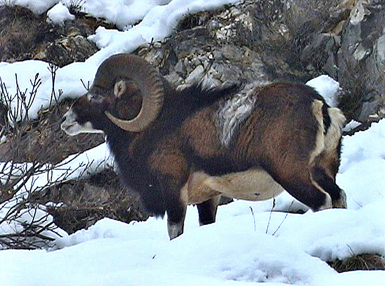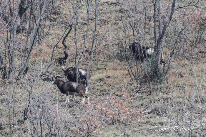 Dati accertati nella zona di studio (bacino del Metauro): tipo di dati: individui vivi, individui morti. Frequenza di osservazione: rara. Distribuzione altimetrica: 700-1350 m. Segnalazioni di presenza: un branco di mufloni è presente nel Gruppo del M. Catria sin da prima del 1980, a partire da quelli fuggiti o liberati da un recinto in cui venivano allevati presso Madonna dell'Acquanera (BARBADORO, com. pers.). Il gruppo, sopravvissuto al duro inverno del 2005, è stato decimato dal nevone del 2012, ma è ancora presente (3 maschi e 4 femmine osservati in agosto-settembre del 2015, nella faggeta a 1350 m di quota - BARBADORO, com. pers.; 12 esemplari nel novembre 2020 e 25 nel settembre 2023 - FANESI, com. pers.). Habitat: praterie montane, pendii ripidi con rocce affioranti, faggete.