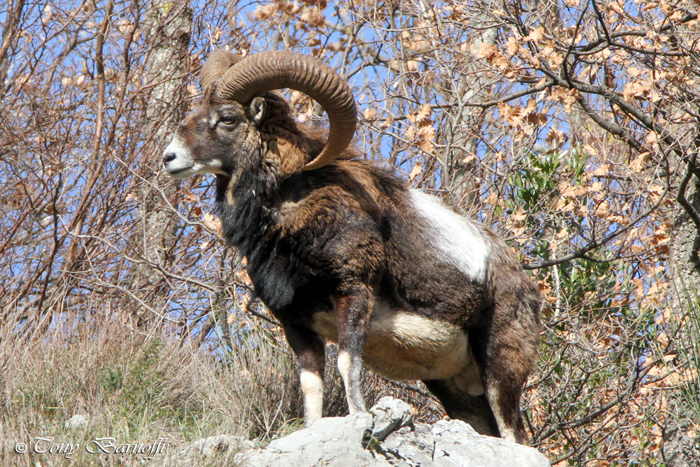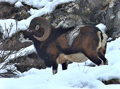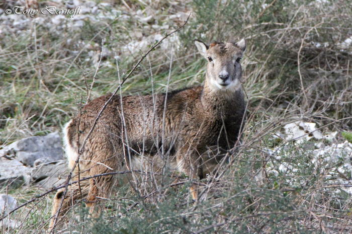 Caratteri distintivi: struttura corporea simile a quella della pecora domestica. Il maschio possiede grandi corna ricurve di aspetto inconfondibile, la femmina ne è priva o le ha di dimensioni ridotte.