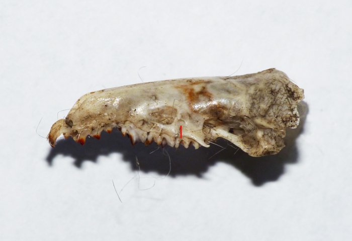 Su 4 esemplari esaminati, 3 presentavano un piede posteriore di 15 mm e uno di 16 mm. Su 5 crani esaminati, il forame lacrimale era allineato, seppur di poco, col secondo molare superiore o tra il primo e il secondo molare.