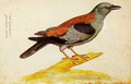 Ghiandaia marina - Coracias garrulus - Gaggia marina: ''Sotto questo nome di gaggia si trova ancora ma di raro, ne' nostri paesi, un altro uccello di grandezza d'una gaggia, de diversi colori composto, verde giallo, negro e bianco, quale comunemente qua si chiama gaggia marina'' (6).