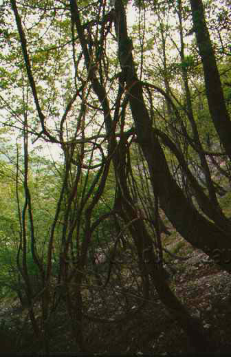 Rampicante legnoso lungo anche 20-30 m, talora prostrato a terra, con foglie caduche, composte, prensili e opposte sui rami. La pianta è velenosa, tuttavia le giovani estremità dei rami sono commestibili dopo cotte. Fiori bianchi (a) in infiorescenze terminali, da giugno ad agosto. Frutti provvisti di lunghe code piumose (b), che permangono durante l'inverno.