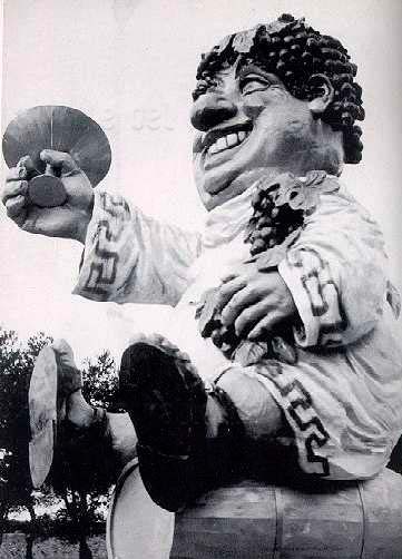 Carnevale 1954c. Il Pupo: ''Bacco'', di Giovanni Pierpaoli. Bacco, senza tabacco e senza Venere, brinda con il Sangiovese