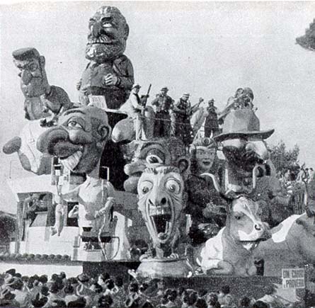 Carnevale 1955. Carro "Un carro di proverbi", di Hermes Valentini - 2° premio. Da: "Prospettive Marchigiane", Anno II, n.6, novembre-dicembre 1960.
