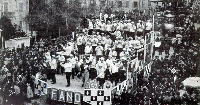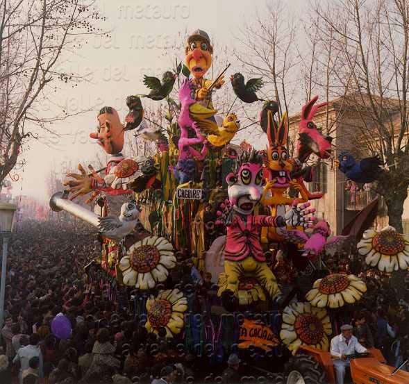 Carnevale 1961. Carro "Penna di Falco", di Bonetti e Pedinelli - 4° premio. Da: "Città di Fano", Anno II, n.1, 2 febbraio 1980.
