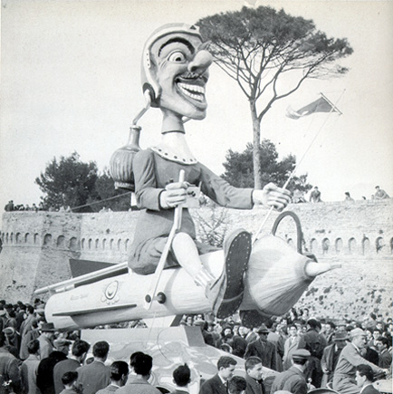 Carnevale 1961 (da "Prospettive Marchigiane"). Carro ''Penna di Falco'' di Enzo Bonetti e Mario Pedinelli - 4° premio.