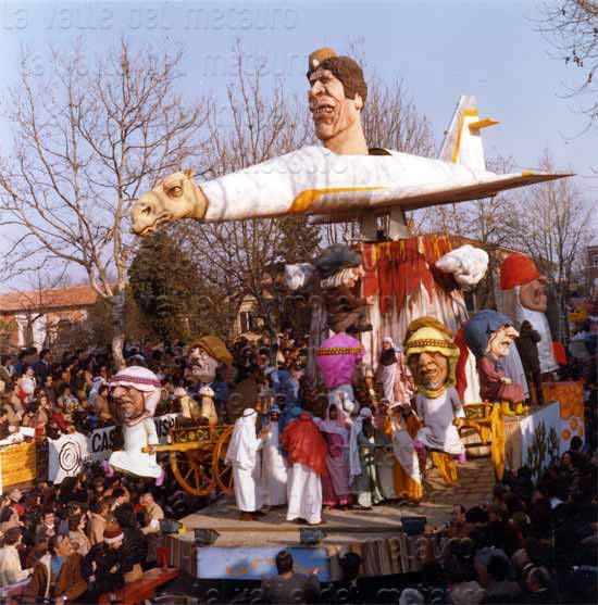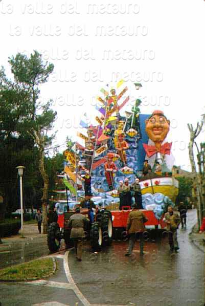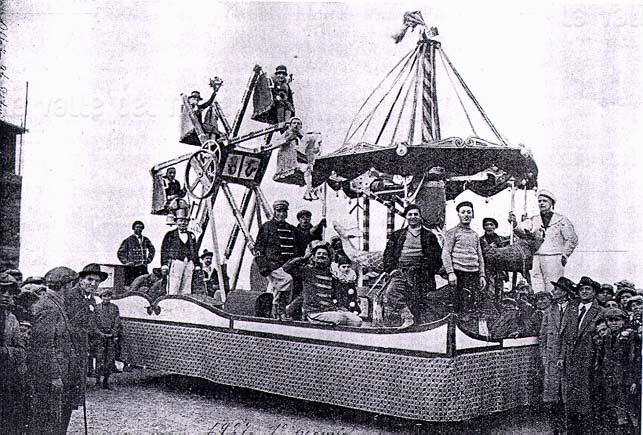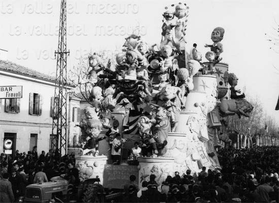 Carro ''Arancio tropicale'' - 2° premio. Sullo sfondo la barriera di Porta Giulia, oggi non più presente (da MAGGIOLI 1999)