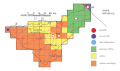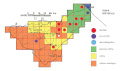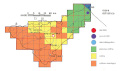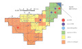 Carta di distribuzione (1974-2017) di Vallonia costata. I cerchi rossi con centro bianco indicano esemplari raccolti in posature