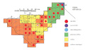 Carta di distribuzione (1974-2017) di Rumina decollata. I cerchi rossi con centro bianco indicano esemplari raccolti in posature