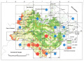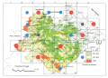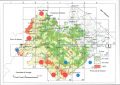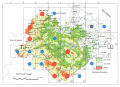 Carta di distribuzione di Rana agile, con presenza indicata sino al 2010 in azzurro, dal 2011 al 2020 in rosso, anteriore al 1980 in viola