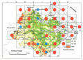 Carta di distribuzione di Rana verde, con presenza indicata sino al 2010 in azzurro, dal 2011 al 2020 in rosso