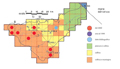 Carta di distribuzione di Geco verrucoso, con presenza indicata sino al 2010 in azzurro, dal 2011 al 2020 in rosso, cerchio più piccolo: dati riferiti ad uno o a pochi esemplari non naturalizzati con certezza