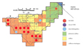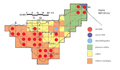 Carta di distribuzione di Natrice tassellata, con presenza indicata sino al 2010 in azzurro, dal 2011 al 2020 in rosso