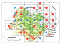 Carta di distribuzione di Ramarro occidentale, con presenza indicata sino al 2010 in azzurro, dal 2011 al 2020 in rosso
