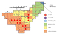Carta di distribuzione di Cervone, con presenza indicata sino al 2010 in azzurro, dal 2011 al 2020 in rosso