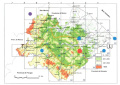 Carta di distribuzione di Geotritone italiano, con presenza indicata sino al 2010 in azzurro, dal 2011 al 2020 in rosso