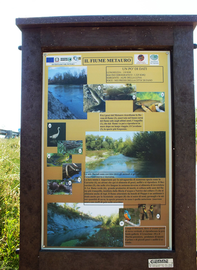 Cartello illustrativo all'inizio del percorso lungo il F. Metauro a Madonna Ponte, luglio 2013