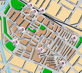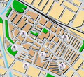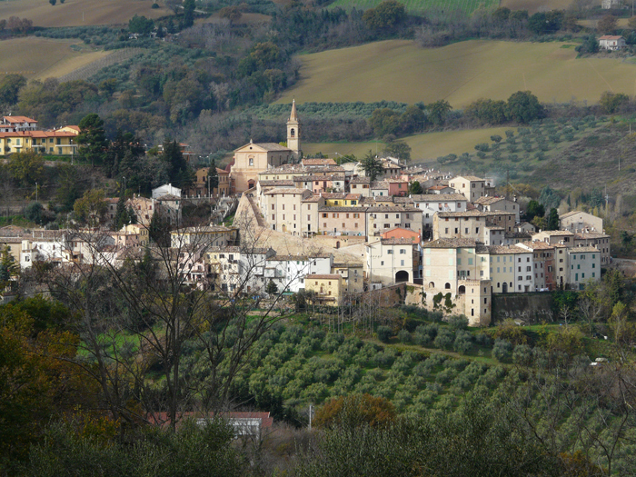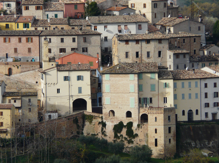 Cartina itinerario. Legenda: 1 - Chiostro di S. Agostino; 2 - Chiostro del Convento di S. Paterniano; 3 - Chiostro della Chiesa di S. Michele