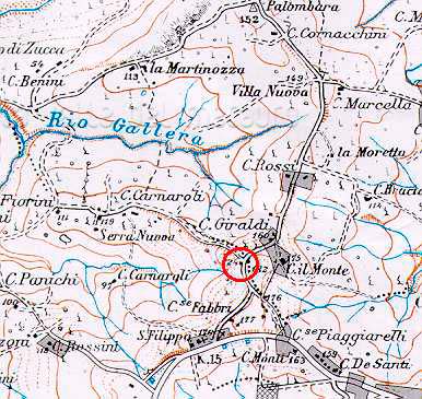 Casa Fabbri (Piagge). Carta top. Reg. Marche 1:25.000 110 III (autorizz. Ufficio Cartografia e Inform. Territoriali Reg. Marche del 13-3-1999 e aut. IGM n. 4877 del 2-11-1998)
