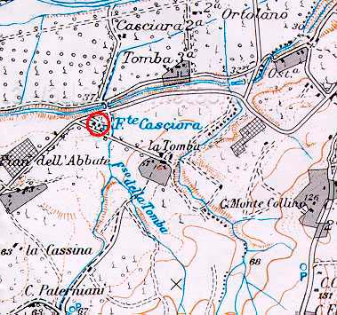 Casa Fonte Casciara (Montemaggiore). Carta top. Reg. Marche 1:25.000 110 III (autorizz. Ufficio Cartografia e Inform. Territoriali Reg. Marche del 13-3-1999 e aut. IGM n. 4877 del 2-11-1998)