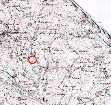 Casa Signoretti (Montemaggiore). Carta top. Reg. Marche 1:25.000 109 II (autorizz. Ufficio Cartografia e Inform. Territoriali Reg. Marche del 13-3-1999 e aut. IGM n. 4877 del 2-11-1998)