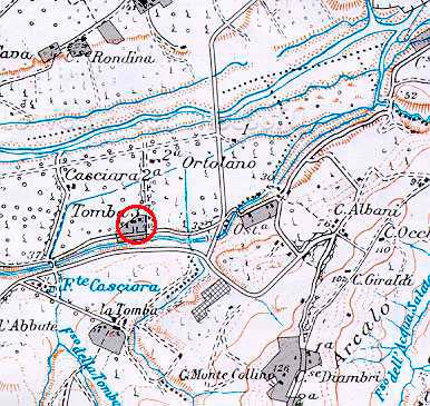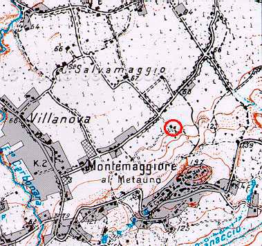 Casa Tomba 3° (Montemaggiore). Carta top. Reg. Marche 1:25.000 110 III (autorizz. Ufficio Cartografia e Inform. Territoriali Reg. Marche del 13-3-1999 e aut. IGM n. 4877 del 2-11-1998)