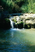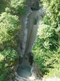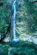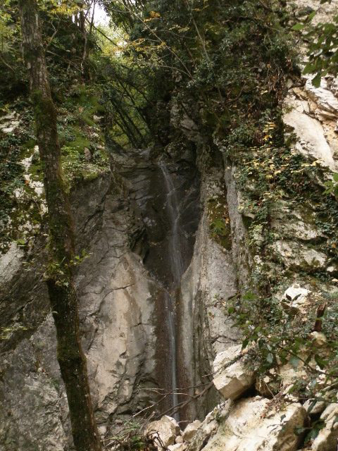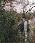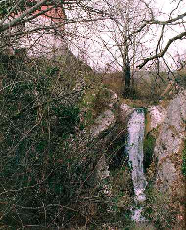 Cascata, durante uno degli occasionali periodi di attività, in corrispondenza della piccola valle sospesa sulla parete di sinistra della Gola del Furlo, immediatamente a monte della Grotta del Grano, novembre 2005
