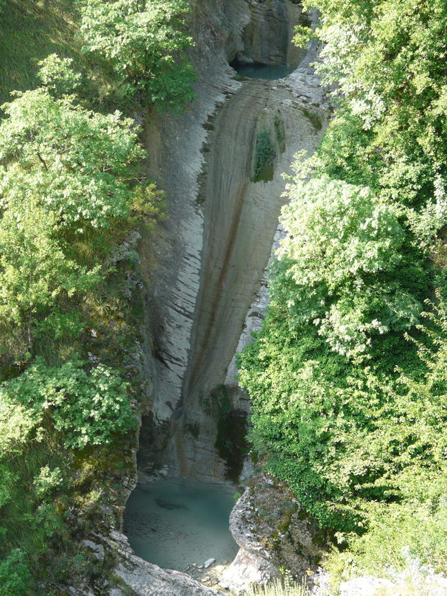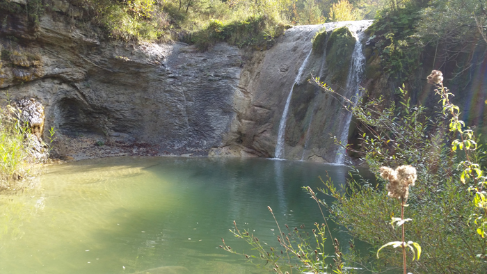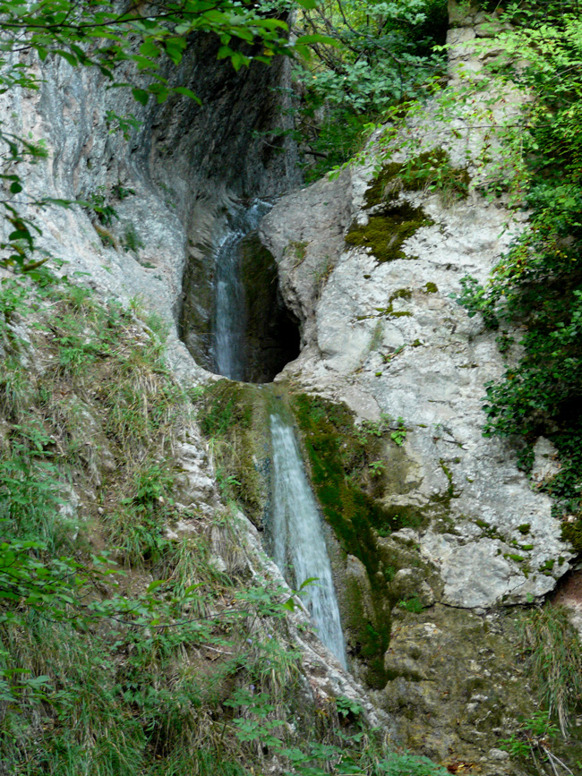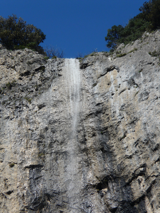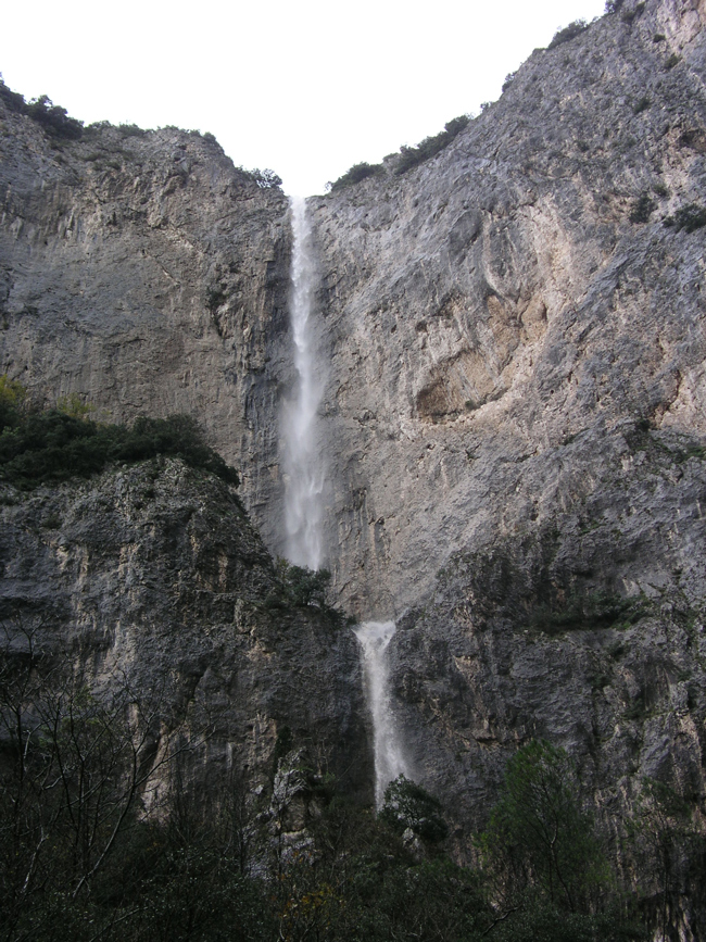 Cascata, durante uno degli occasionali periodi di attività, sulla parete di sinistra della Gola del Furlo, immediatamente a monte della Grotta del Grano, marzo 2010
