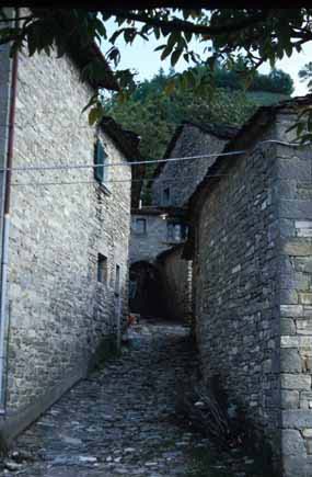 Case del centro storico di Sant'Ippolito e scalinata sulle mura, agosto 2007