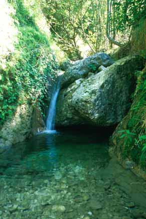 Cascatella in Val d'Abisso, a monte del Molinaccio (M. Nerone), agosto 1996