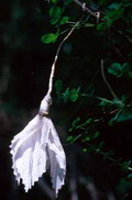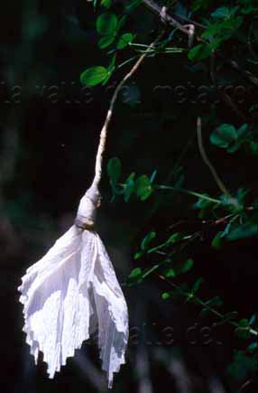 Cassìa, alto Candigliano (Sant'Angelo in Vado), giugno 2000. Fiore di carta; usati per una celebrazione religiosa, erano legati su cespugli presso un'edicola religiosa
