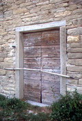 Castel della Pieve (Mercatello sul Metauro), portone di un edificio, agosto 2001