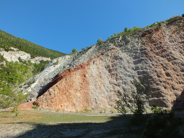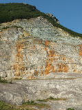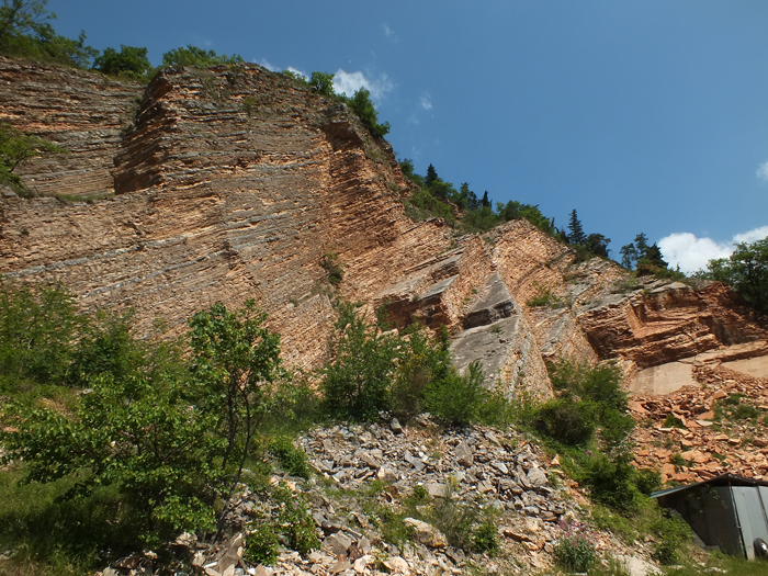 Cava di Gorgo a Cerbara con macchie rugginose da ossidazione della pirite, giugno 2012