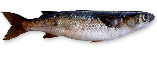 Cefalo bosega, 25 cm, particolare della parte anteriore del dorso. Acque marine presso riva a Fano, maggio 2007